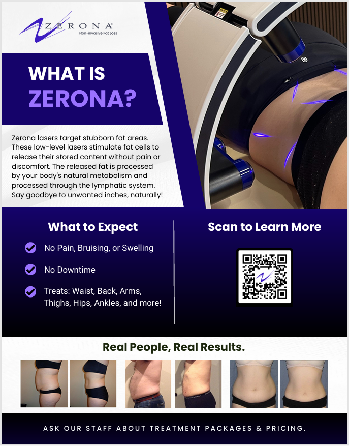 Fat Loss Laser What is Zerona? Zerona Brochure PDF Contact us NOW to find out if you are a candidate for this revolutionary fat loss technology Contact Now
