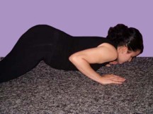 Come on to your hands and knees, bringing your hands in front of your shoulders a full hand space. Lean your body forward so that the shoulders come in line with the wrists. Engage your abdominal muscles and keep your tailbone tucked down and your lower back lifted, so that your buttocks don`t sag toward the ground. Inhale. Exhale and slowly band your elbows in close to your ribs (Figure 11). Inhale and push the ground away, squeezing the abdominal muscles towards the spine. Repeat 3-5 times, taking a break in Child`s Pose, as needed.