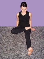 Stand erect with feet under hips, or slightly wider with toes turned out a few degrees. Place hands on your hips and inhale. Tuck the tailbone and exhale as you slowly bend the knees as if you were sitting in a chair, making sure the knees track over the toes (don`t let the knees collapse towards the middle). Straighten knees on an inhale and return to upright position. Repeat 5 times. (Figure 3) This pose may also be done by holding onto the back of a chair for support (Figure 4).